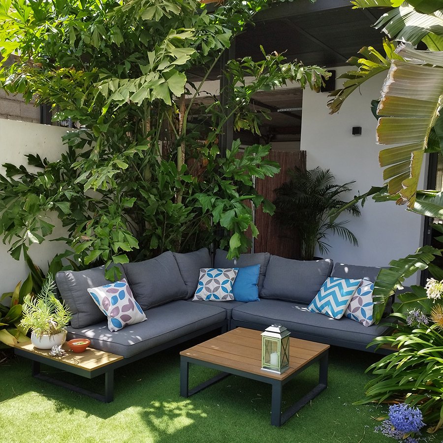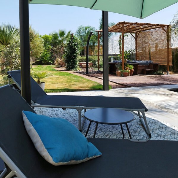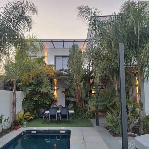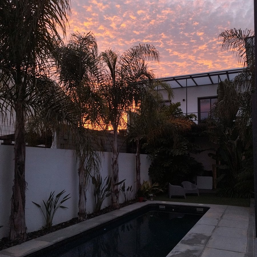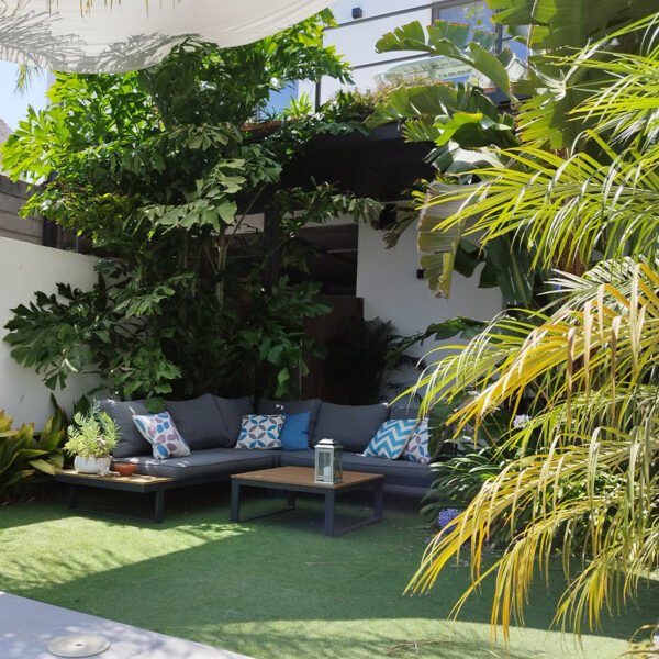 Además de una terraza en el piso superior para desayunar y una zona de sofa exterior cerca de la piscina.